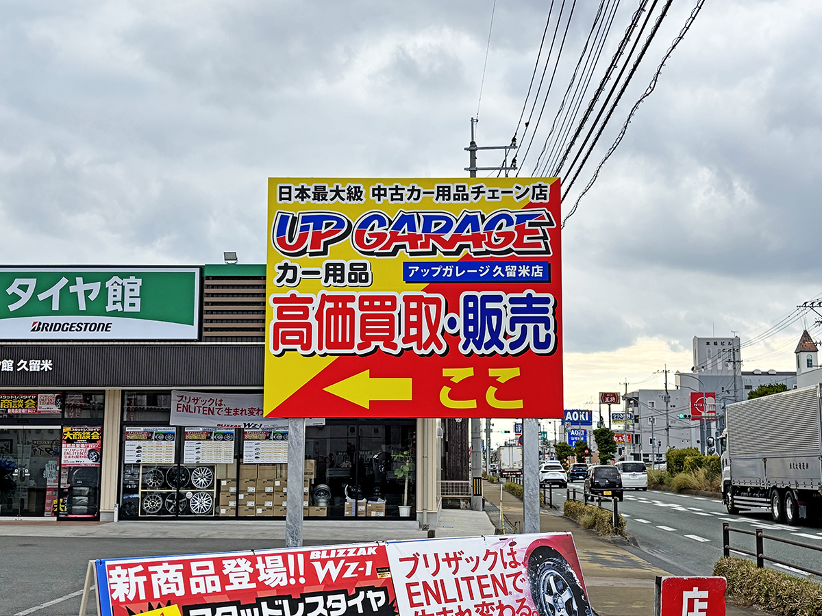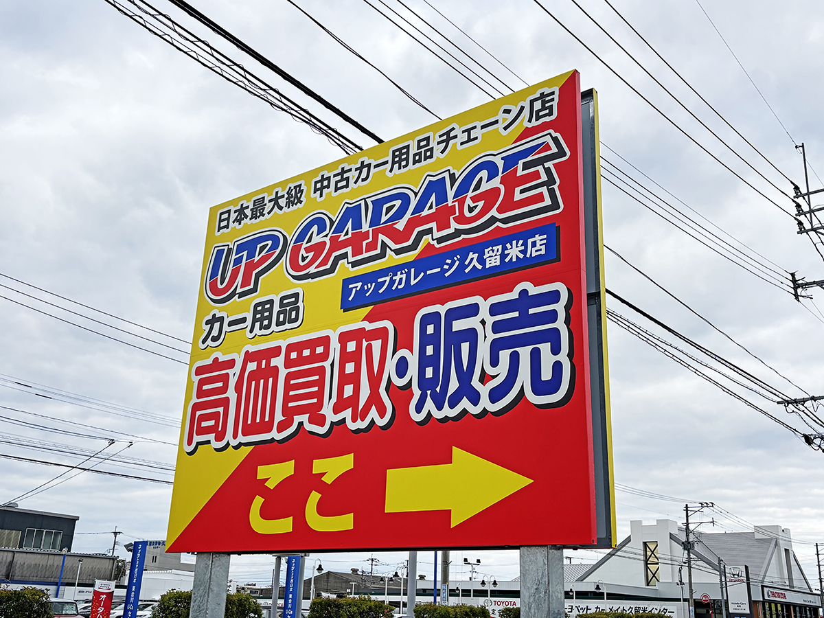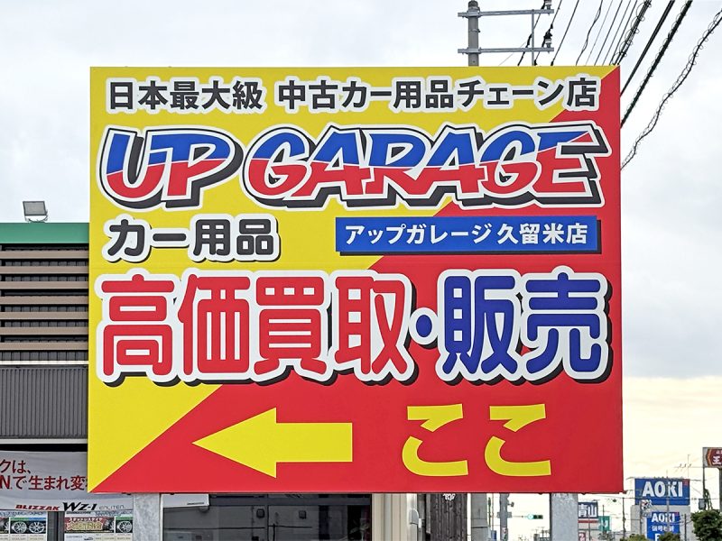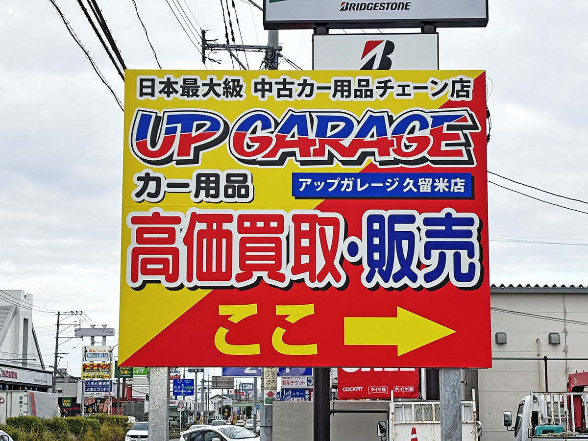 「アップガレージ久留米店様」のサイン工事を行いました。