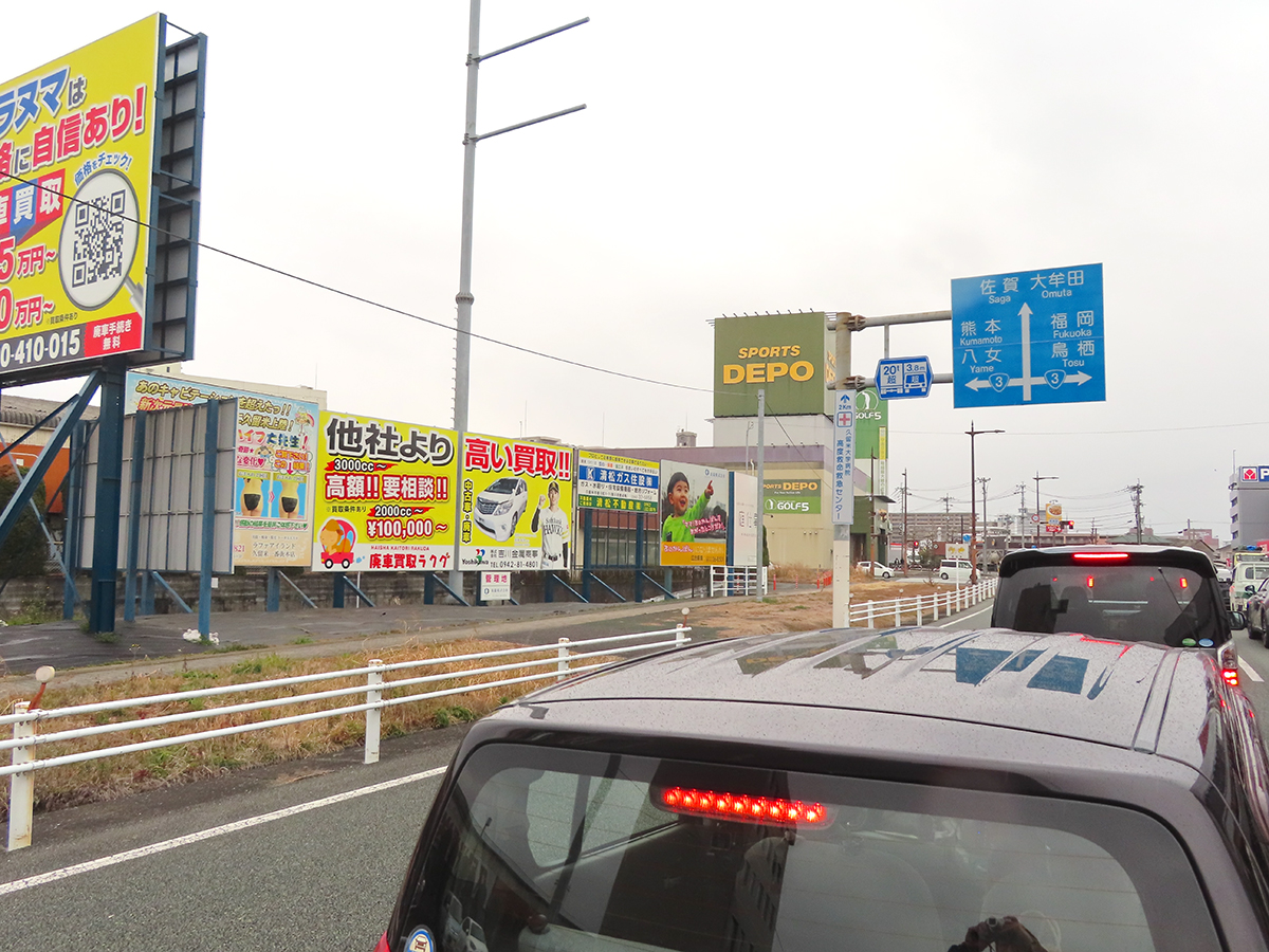 国道3 号線と国道210 号線が交差する場所で、昼夜問わず非常に交通量が多い通り沿いに面した立地です。